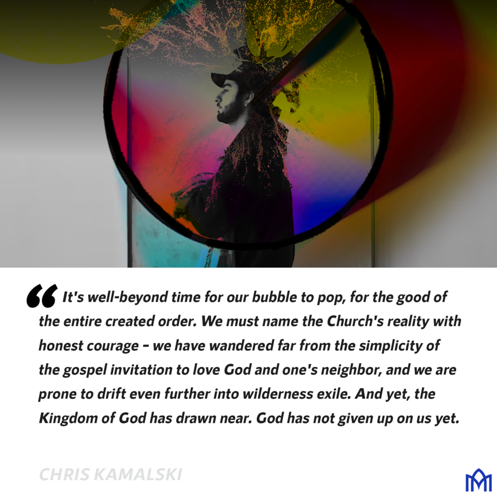 "It's well-beyond time for our bubble to pop, for the good of the entire created order. We must name the Church's reality with honest courage–we have wandered far from the simplicity of the gospel invitation to love God and one's neighbor, and we are prone to drift even further into wilderness exile. And yet, the Kingdom of God has drawn near. God has not given up on us yet."