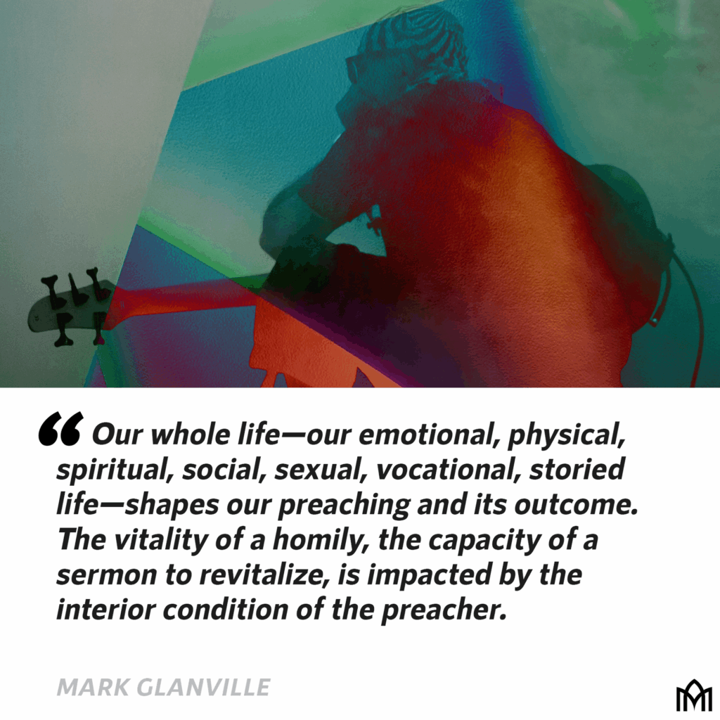 "Our whole life—our emotional, physical, spiritual, social, sexual, vocational, storied life—shapes our preaching and its outcome. The vitality of a homily, the capacity of a sermon to revitalize, is impacted by the interior condition of the preacher."