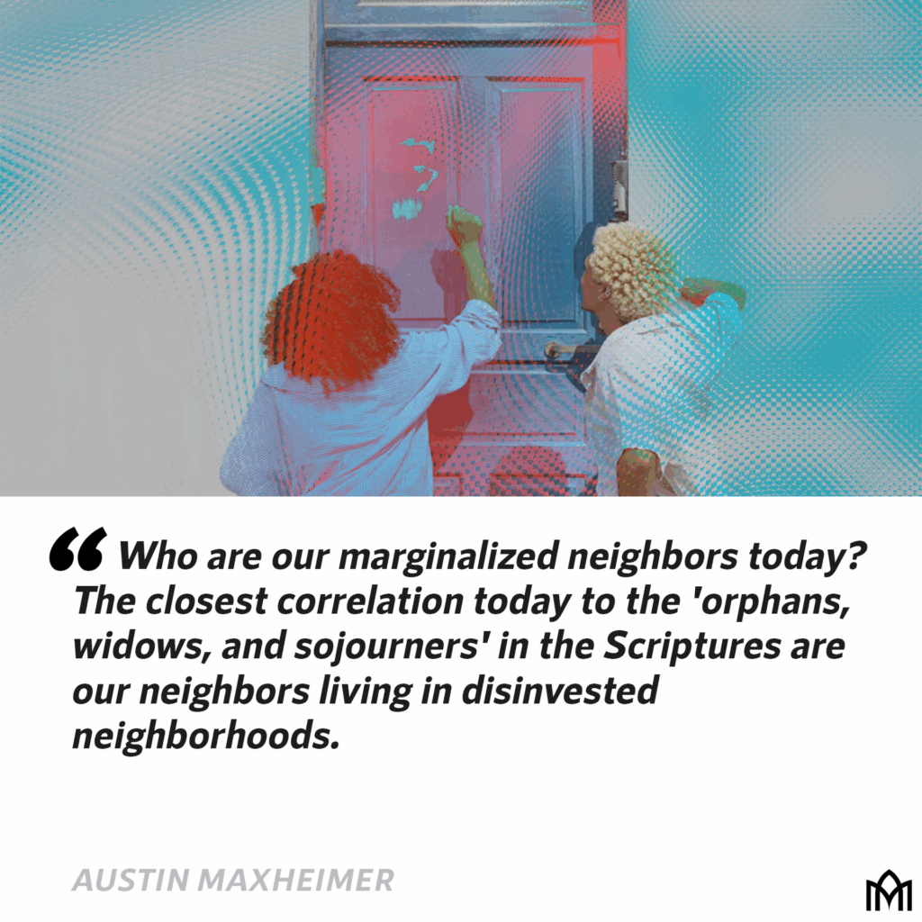 This is a complex reality that would take a dissertation to properly address, so apologies for the oversimplified presentation here. But it is my argument that the closest correlation today to the OWS of Jesus’ day are our neighbors living in disinvested neighborhoods. The most basic reason for this is because this is where marginalized neighbors can afford to live! I want to acknowledge that not all marginalized neighbors live in disinvested neighborhoods and not all neighbors living in disinvested neighborhoods are marginalized. However, the housing stock in neighborhoods like the one I live are typically much lower than the surrounding community, and so my neighbors frequently experience generational poverty, are fixed-income households due to aging, disabilities or unemployment, and are filled with immigrant and migrant populations. Often, my neighbors are minorities who have faced unjust historical practices like redlining and many other systemic injustices, and are as a result are overrepresented in urban core neighborhoods that faced decades of disinvestment when our cities sprawled to the suburbs.